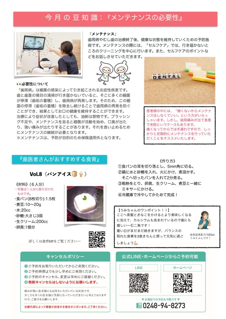 毎月1日に、院内新聞「口活通信」を発行しています。 ぜひご覧ください。