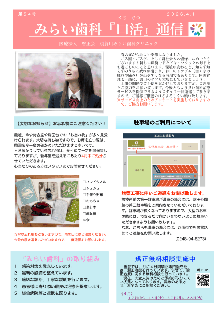 毎月1日に、院内新聞「口活通信」を発行しています。 ぜひご覧ください。